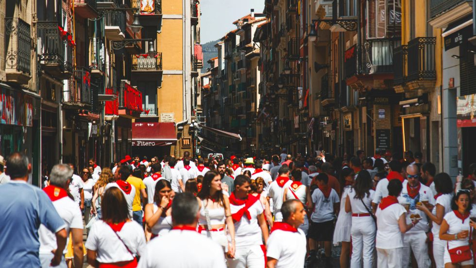 La simplicidad de este atuendo festivo hace que tanto los lugareños como los visitantes lo utilicen, generando multitudes de personas vestidas de blanco y rojo, los colores emblemáticos de las fiestas de San Fermín.